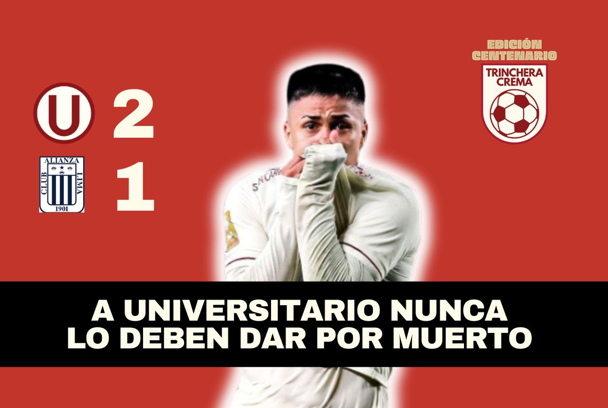 En un partido que se tenía dominado, iba a ser muy injusto que la U perdiera y, sobre todo, con un autogol. Sin embargo, quedó demostrado que a Universitario nunca hay que darlo por muerto. Con goles de ‘Tunche’ Rivera y de Jairo Concha dio vuelta al marcador y demostró por que, a días de su centenario, sigue siendo el más grande del Perú.